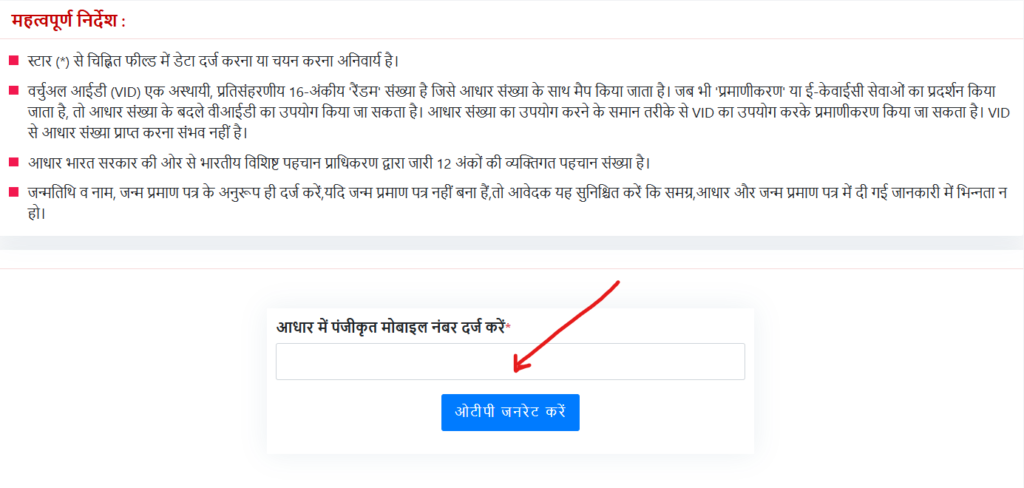 - इसके बाद परिवार के मुखिया का मोबाइल नंबर दर्ज करें जो आधार कार्ड से लिंक हो।