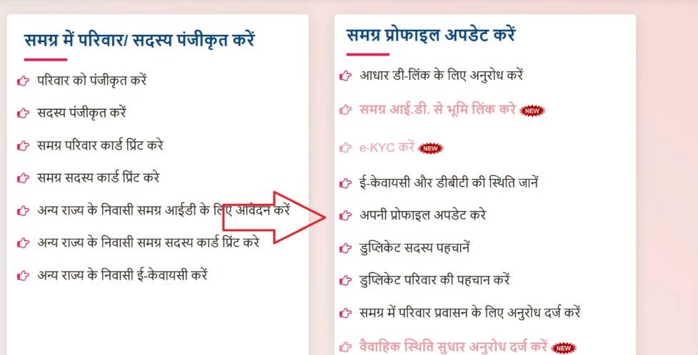 • सबसे पहले Samagra Profile Update सेक्शन में जाएँ।